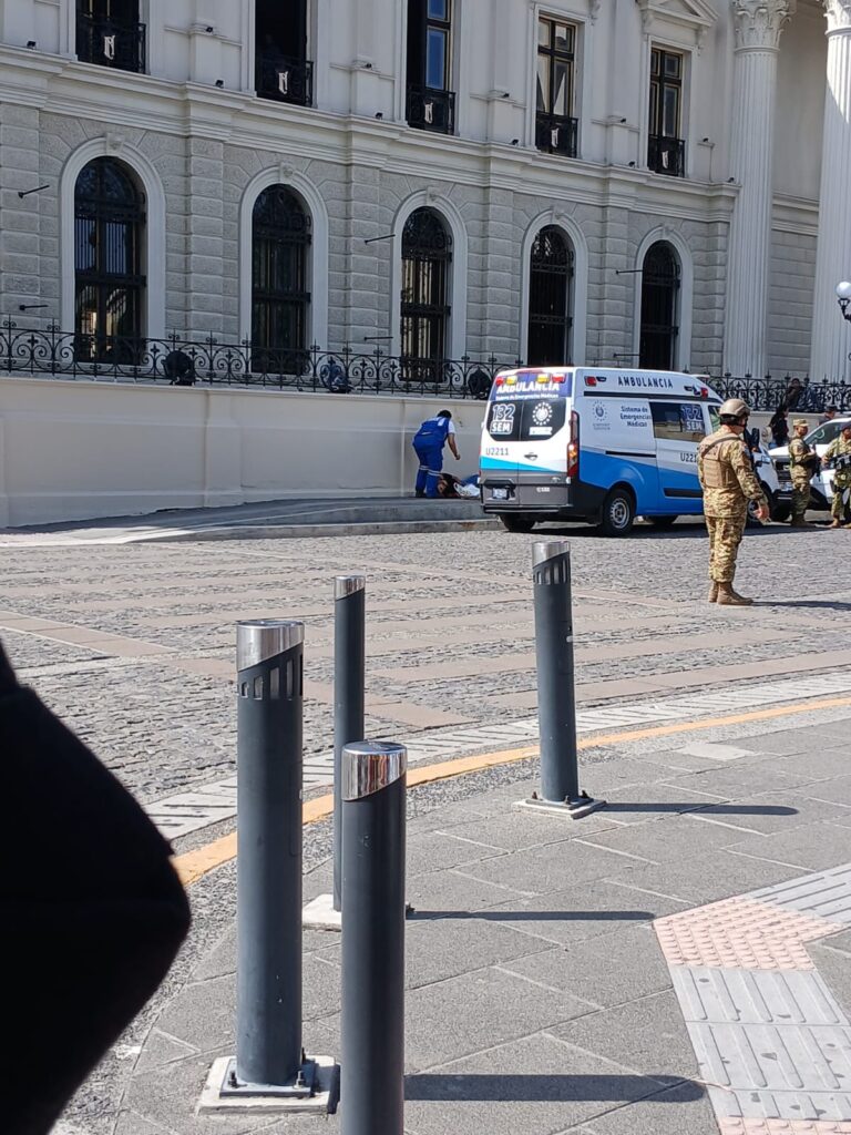 Cruz Verde Santa Anita detalló que sus socorristas fueron alertados sobre una mujer herida por arma de fuego que se encontraba tendida en la acera del Palacio Nacional. Al llegar, confirmaron que la víctima ya no presentaba signos vitales.