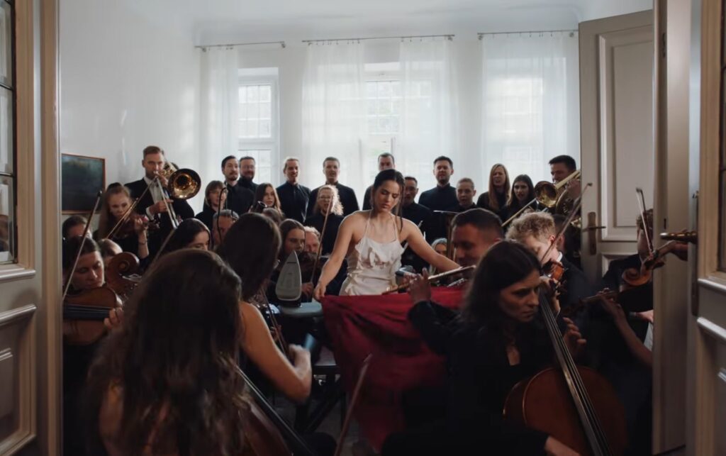 El videoclip muestra a Rosalía en actividades cotidianas mientras la orquesta la sigue, y refleja la búsqueda de sanación espiritual de una mujer en duelo.
